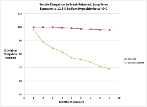 - Improved elongation: the new OR-1000 will maintain its elongation properties better over time while storing heavy oxidizing chemicals. This performance is superior to other HDPE materials commonly used in tank construction.