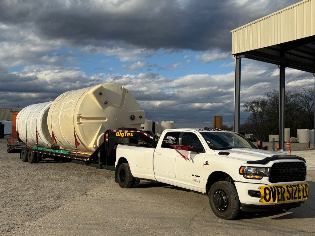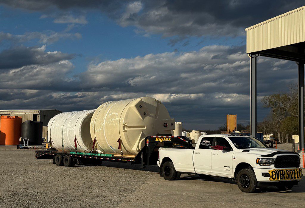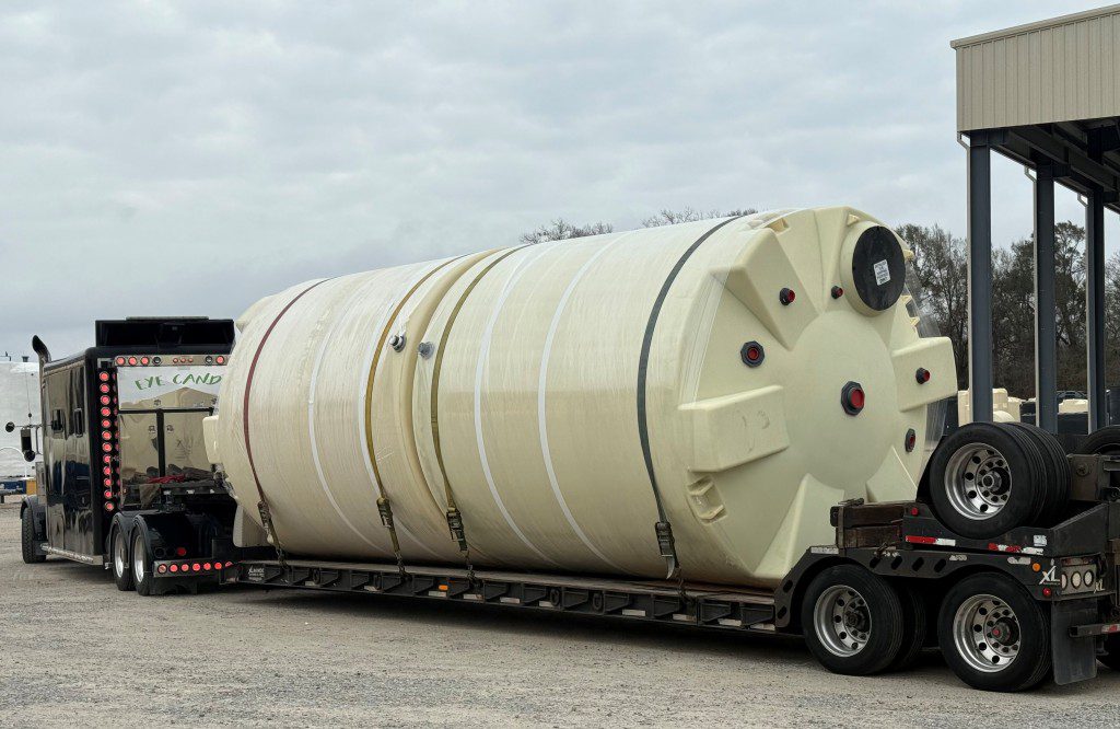 SAFE-Tanks on a lowboy trailer getting ready to head out